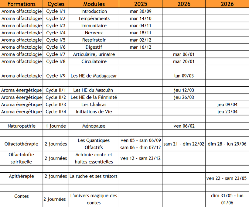 Formations à Bousval centre l'Olivier - agenda 2025 - 2026